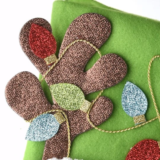 Combining fun and function, this Christmas stocking is deep and wide allowing it to be filled with lots of goodies. Unique in design, this stocking features a fluffy smiling teddy bear wearing a red scarf and bright green hat that is decorated with gloss-finished antlers festooned with colorful Christmas lights. It is constructed of strong polyester materials designed for years of holiday cheer.