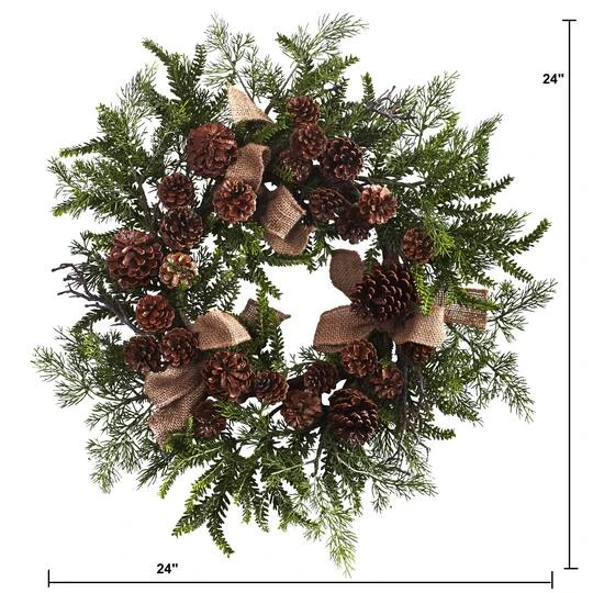 For those that love a more classic look, there is no finer selection than this beautiful pine wreath. A cluster of pinecones surround the entirety of the piece, making it perfect for any holiday event, and the brown burlap bows only highlight that wintertime beauty that a piece like this can create. It will never dry out, and also makes a perfect gift.