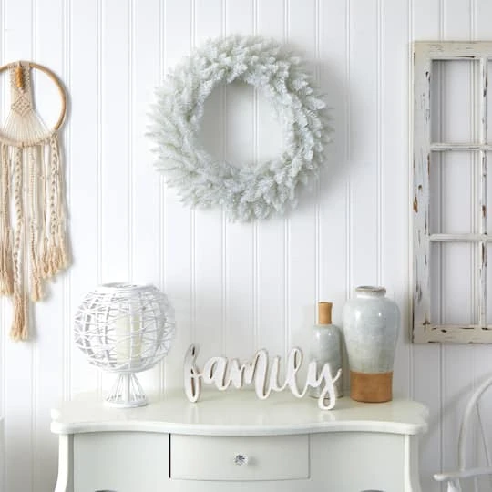 Light up your favorite seasonal accents while adding serious curb-side appeal with this artificial Christmas wreath intricately designed from realistic looking pine foliage in a palette of seasonal evergreens. Arriving pre-strung with 35 LED lights to effortlessly illuminate either a wall or door, this 24in. (in diameter) decorative wreath makes for an inviting accent and will undoubtedly transform any entrance all throughout the holiday season. Artificial wreaths are manufactured using synthetic materials, such as polyester material or plastic, and are well designed and constructed to be life-like in appearance.