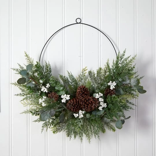 Want to feel nostalgic for Christmas? If you love Christmas but want a trendy alternative to the classical wreath, this half wreath is a better choice. Soft, hued evergreens are accented by pinecones and white berries. Crafted from high-quality materials, this faux wreath will last a while. Artificial wreaths are manufactured using synthetic materials, such as polyester material or plastic, and are well designed and constructed to be life-like in appearance.