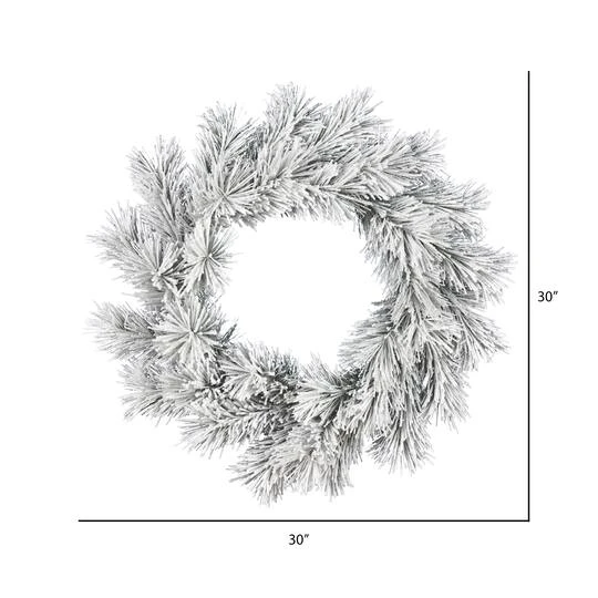Add some holiday spirit to your front door or mantle with this beautiful frosted wreath. This wreath comes unlit and features long needle tips frosted with artificial snow. It can be used just as it is or customized with your favorite lights, ornaments, ribbons, or holiday picks. The wreath measures 30″ across the diameter from the end of one tip to another.Â