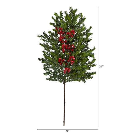 Create personalized holiday accents with this set of loose stems, showcasing realistic looking pine foliage accented throughout with faux red berries to evoke seasonal beauty. It’s perfect for DIY-ing custom holiday arrangements or displaying individually throughout tight spaces.