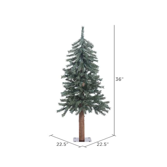 Introducing the Vickerman Natural Bark Alpine Artificial Christmas Tree, a captivating addition to your holiday or everyday rustic décor. This exquisite tree seamlessly blends the charm of the outdoors with the convenience of an artificial design. Standing at 3 feet tall, this Alpine tree is perfectly suited for tabletops, mantels, or any cozy corner that craves a touch of nature. With 187 PVC tips, it showcases a lush and full appearance, reminiscent of a real Alpine tree. The rich green color of the PVC tips beautifully complements the natural bark, real wood trunk, creating a striking visual contrast. Designed to suit your personal style, this tree comes unlit, allowing you to add your preferred lighting to create a warm and inviting ambiance. The included flat metal stand ensures stability and easy assembly, making it a hassle-free choice for decorating. Embrace the beauty of nature year-round with the Vickerman Natural Bark Alpine Artificial Christmas Tree, a stunning centerpiece that effortlessly brings rustic charm to any space.