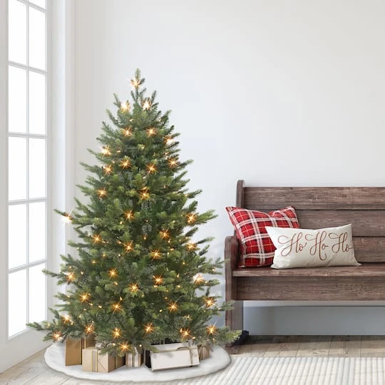 Usher in the holidays with this beautifully-crafted Royal Majestic Douglas Fir Christmas tree. Made to look and feel lifelike with 1,754 PE/PVC branch tips, the stunning realism of this tree is defined by its close attention to detail like pine needle branches for a touch of the magical winter wonderland. It comes pre-lit with 250 UL clear bulbs that will illuminate your space with a festive glow. Pre-strung bulbs simplify the otherwise time-consuming task of hanging lights on the tree. The Sure-Lit pole allows you to simply insert the tree sections into one another for easy assembly and ensures that even if one bulb burns out, the rest remain lit. Made with strong and durable steel components, this Xmas tree is built to last. Flame retardant and hypoallergenic materials make it a safer choice when compared to real trees. Hinged branches are quick and easy to shape, ready to be decorated with your favorite ornaments. This product is backed by a 5-year warranty on the tree and a 2-year warranty on lights for years of quality use.