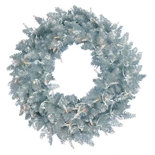 Incorporate bright and modern holiday décor into your space with this beautiful wreath. A great accent for your front door or mantle, this wreath comes pre-lit with warm white Dura-lit LED mini lights that run on 120V AC, features traditional PVC tips, giving a lush, full look, and can be customized with your favorite ornaments, ribbons, or holiday picks. The wreath measures 48″ across the diameter from the end of one tip to another.