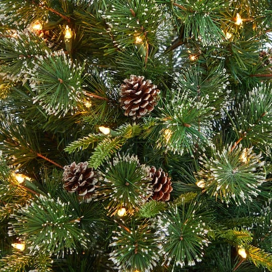Recreate a snowy Christmas with this snow-tipped artificial Christmas tree. Arriving pre-strung with 200 clear lights and accented with pinecones throughout for a natural, rustic look, house this faux Christmas tree in any narrow area. Designed to mimic a Christmas wonderland, bend the 588 PVC branches to fit in your space and adorn them with your favorite mini ornaments. Standing 4 ft., have a bright Christmas, no matter the size of your area. Perfect for a kids’ room, narrow area, apartment or dorm room.