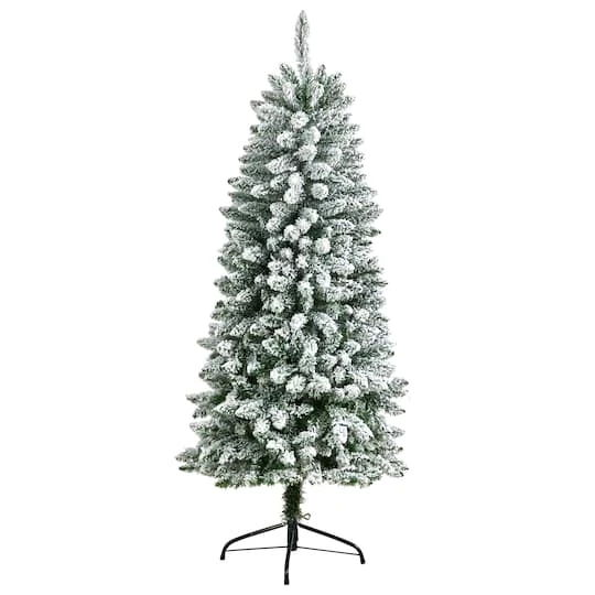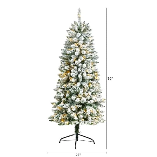 Transform your home into an enchanting winter wonderland with this flocked artificial Christmas tree. If you dream of a white Christmas, these artificial trees are designed to mimic the texture and foliage of real trees with their upward sloping branches that can easily house mini ornaments. Pre-strung with 150 LED lights for a warm, candle-like glow, all that’s missing are your ornaments. Standing at 5ft. from a metal stand (included in height), this flocked tree complements compact spaces that need some Christmas love. Everyone can have a white Xmas even if they live in the tropics. Faux Christmas trees are manufactured using synthetic materials, such as polyester material or plastic, and are well designed and constructed to be life-like in appearance. This item will need to be re-shaped when removed from the secure box to allow it to reach its fullest size.