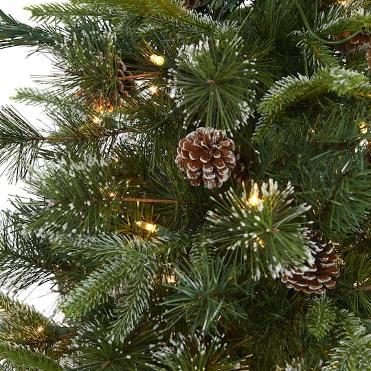 Evoke hints of a winter wonderland this holiday season with the help of this snowy artificial Christmas tree! Completely maintenance-free, this winter-inspired fake Christmas tree boasts a robust silhouette of snow-dusted foliage made up of easy-to-bend branch tips for decorating with your own holiday ornaments, accented throughout with faux pinecones that look incredibly lifelike. Arriving pre-strung with clear LED lights to eliminate and carefully stabilized on a metal stand, this handsome 6ft. tall snowy artificial Christmas tree will not only make holiday decorating a breeze but ensure your home is always holiday-dressed for years to come.