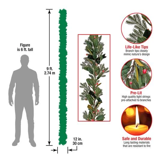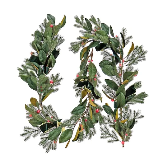 9ft. Magnolia Mix Pine Garland With LED Lights & Bows