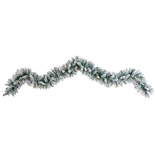 Spotlight any bare area of your home in need of some color and holiday cheer with this flocked artificial garland. Flocked to recreate a snow setting, this faux garland is accented with 50 warm white LED lights. Artificial garlands are manufactured using synthetic materials, such as polyester material or plastic, and are well designed and constructed to be life-like in appearance.