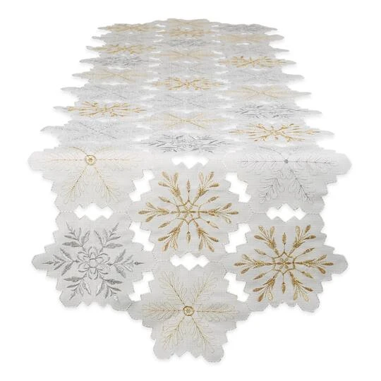 This table runner measures 14×108 inches in size, appropriate for a table that can seat 8 -10 people. Use all through the holiday season. Can be dressed up or down to create the perfect look for each place setting at your holiday table; simply add napkins and rings, placemats, and a tablecloth to complete the look.
