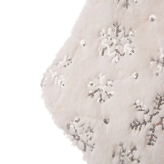The solid white tone of this Super Soft Faux Fur Decorative Christmas Stocking complements any Christmas décor. Plush faux-fur makes up the full stocking, not just the cuff. Elegant and plush white velvet with silver sequin and embroidery. Loop hanger, Perfect for a seasonal gift or your holiday décor.
