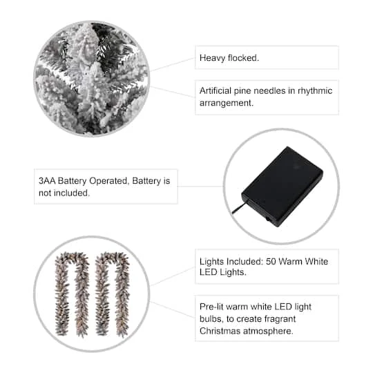 This snow flocked garland provides ample length to easily adorn doors, mantles or banisters, making this versatile decoration ideal for any situation. Each of the 220 tips is modeled to a pine tree while the snow flocked design creates a winter wonderland around your home. Several large pinecones decorations among the needles add an extra holiday touch to this garland, creating the perfect holiday touch for your home.