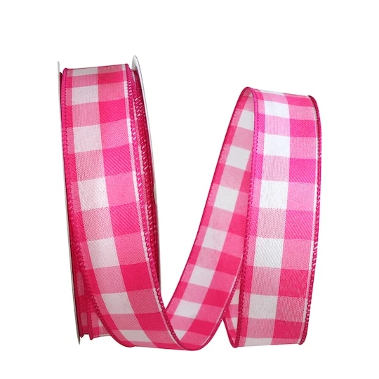JAM Paper 1.5″ X 50yd. Wired Celine Plaid Ribbon Fuchsia