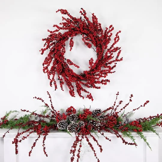 Add a touch of nature to your home or office with this burgundy and red berry wreath. It will be the focal point of your holiday décor while adding pops of color. Just perfect to hang over mantles and doorways.Â