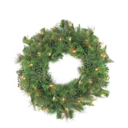 This wreath is beautifully accented with a lush mix of foliage that’s perfect to hang up for the holidays. The longer (3″ wide) needle pine tips have two-tone green color which are mixed with shorter (1.5″ wide) light green tips for extra dimension and real beauty.