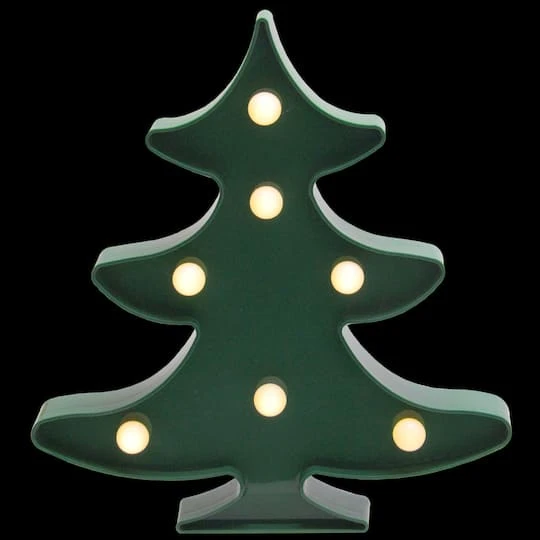 It’s the season of lights! Make sure your holiday parties are the talk of the season with this fun LED Christmas tree marquee. This unique accent piece comes ready for hanging with a keyhole hook on the back. The sign is lined with warm white lights that give off a soft glow.
