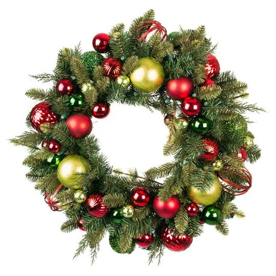 A lighted Christmas wreath is a must have if you want to impress your guests during the holidays, and this one of a kind holiday wreath is sure to meet those expectations. The Festive Holiday wreath is a pre lit, remote controlled, battery operated Christmas Wreath with 50 LED mini lights. The Festive Holiday Christmas wreath features a handcrafted design complete with festive red and green ornaments to give a modern touch on traditional Christmas wreaths. This life-like artificial Christmas wreath is perfect either indoors or outdoors, whether you want to hang it above your fireplace mantle, or display it on your front door. Either way, be sure to complete the look with a matching 9 ft. garland (sold separately) to complement your decorated Christmas wreaths with lights!
