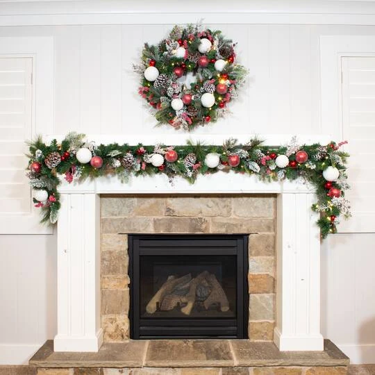 Christmas Wreaths are a must have if you want to impress your guests during the holidays, and this one of a kind wreath is sure to meet those expectations. The Frosted Wonderland Red and White wreath is a pre-lit, remote-controlled, battery-operated Christmas Wreath with 50 LED mini lights. The mini lights are patterned in our candy cane colorway, consisting of red and warm clear lights. It features a handcrafted design complete with frosty red and white ornaments, pinecones, and frost covered red berries and foliage to give a modern touch on traditional Christmas wreaths. The life-like artificial wreath is perfect either indoors or outdoors, whether you want to hang it above your fireplace mantle, or display it on your front door.